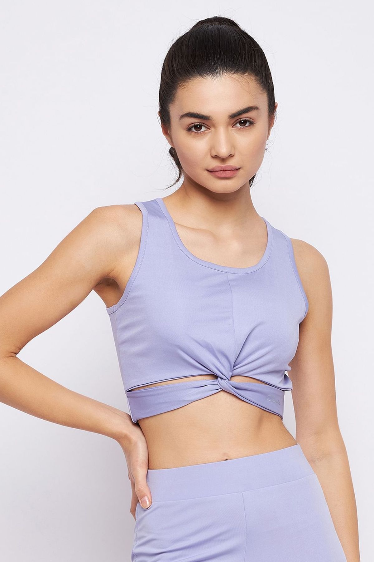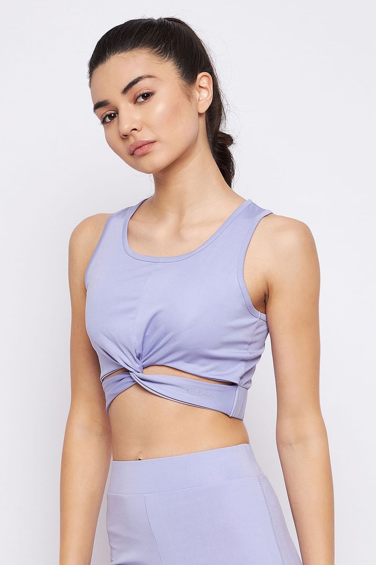 Snug Fit Active Crop Top with Twisted Knot in Lavender