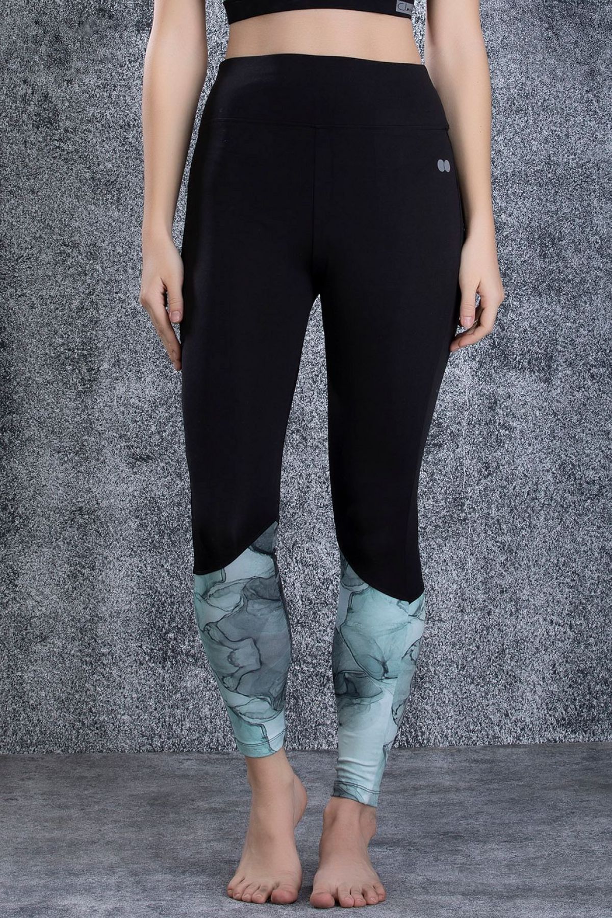 - Designed with black, white, mint green marble print panel at the bottom on both legs.