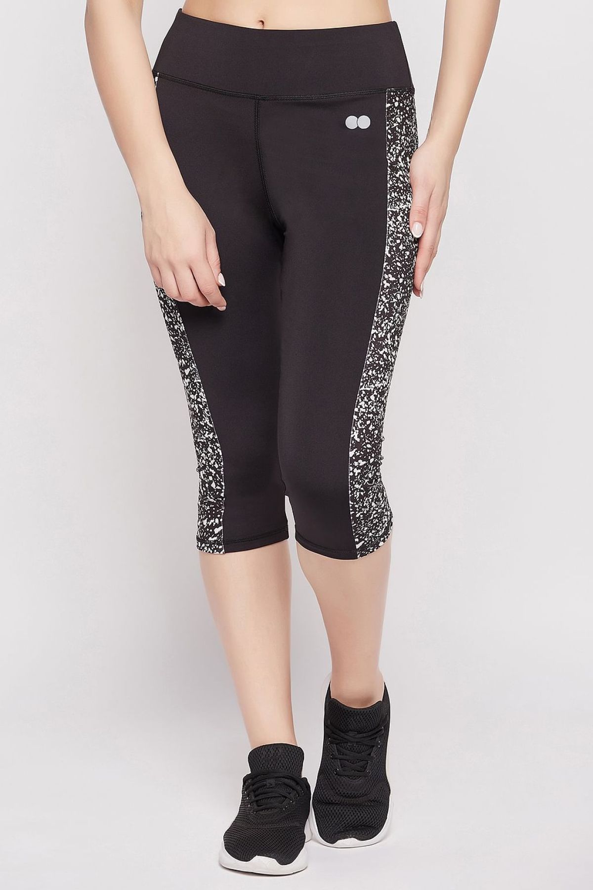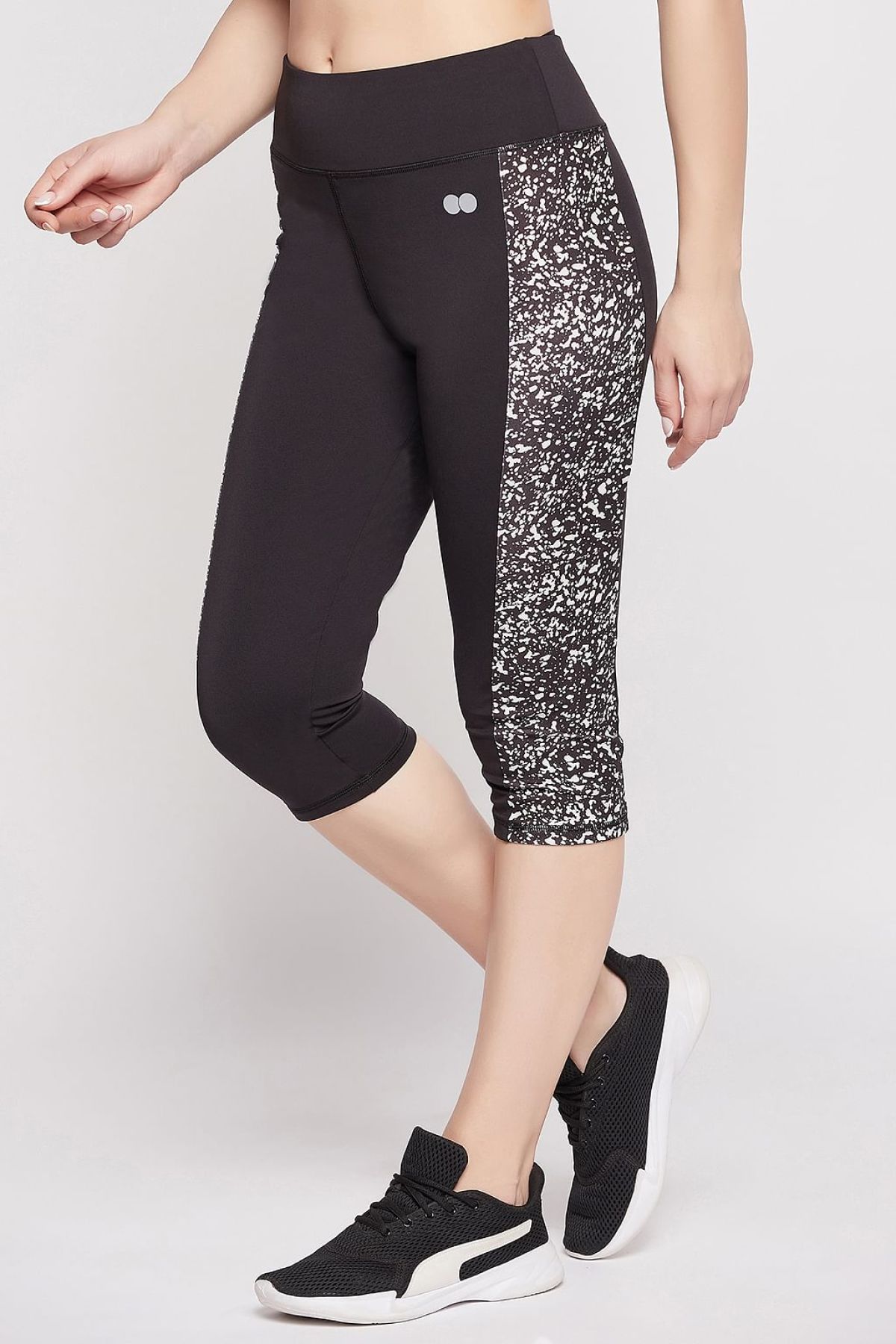 Snug Fit High-Rise Active Capri in Black with Printed Panel