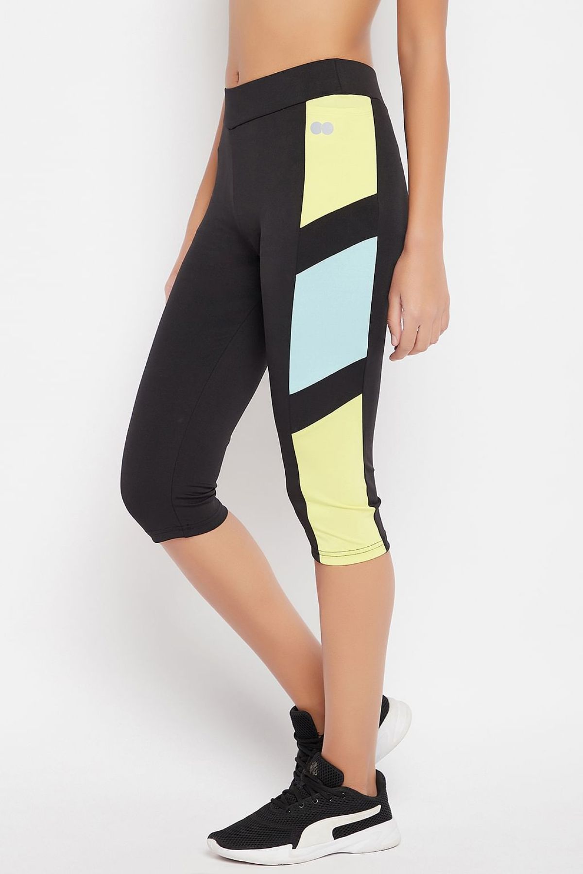 Snug Fit High-Rise Active Capri in Black with Side Panels