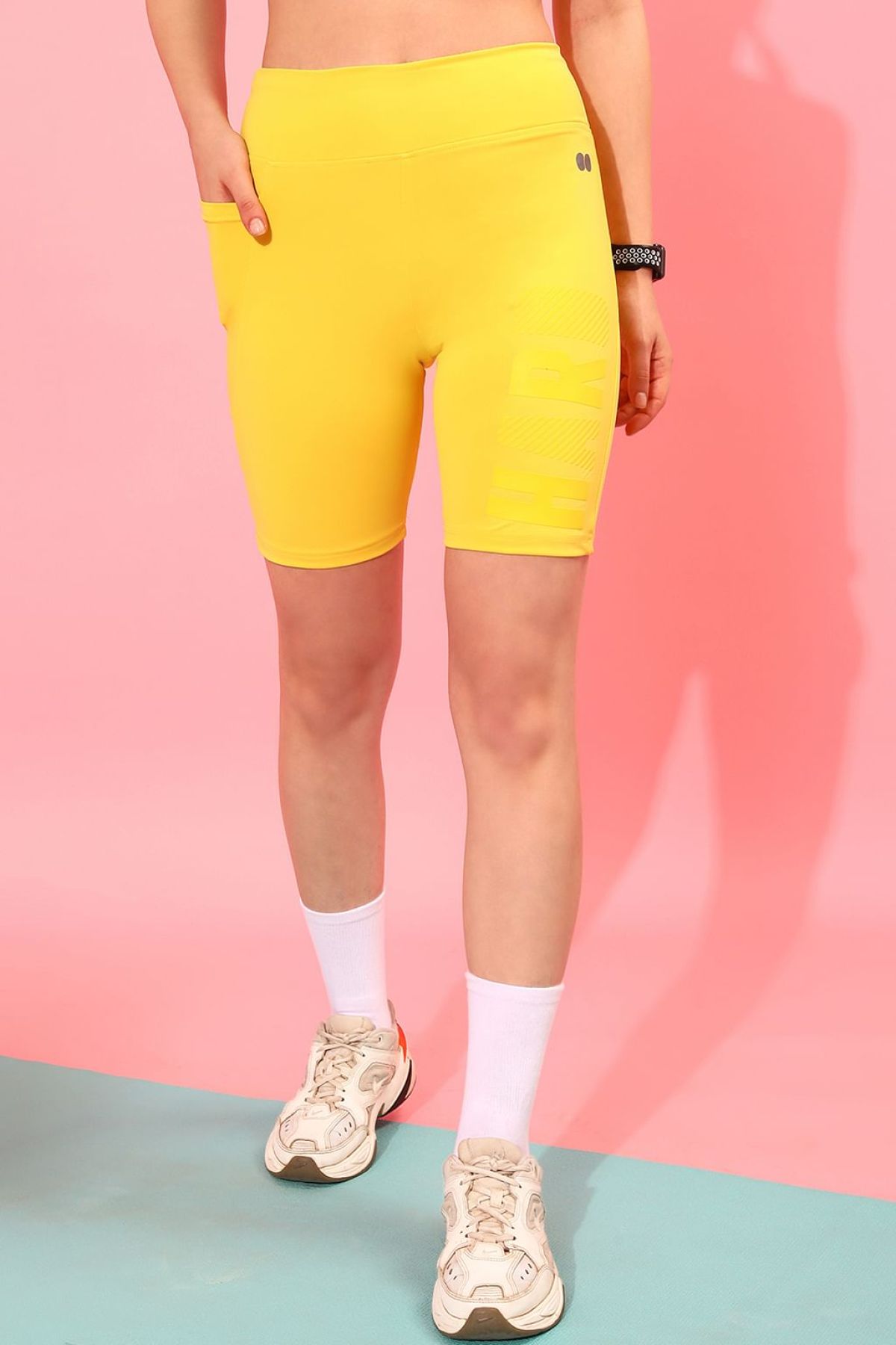 *Check the latest price and availability on the official store.Snug Fit High-Rise Active Shorts in Yellow with Side Pocket