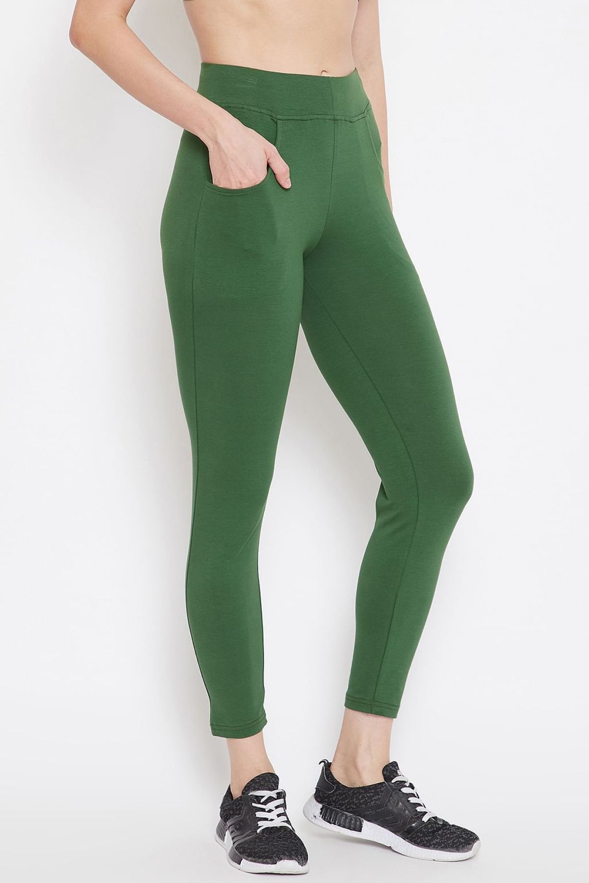 Snug Fit High Rise Active Tights in Green with Side Pockets