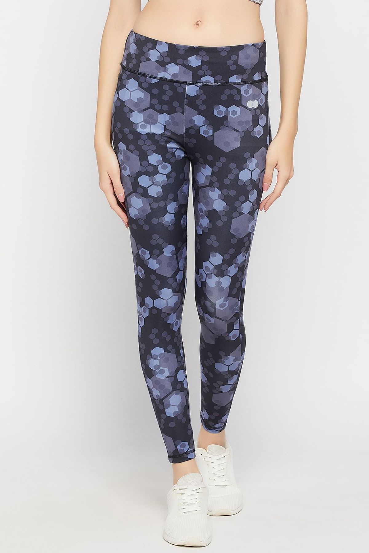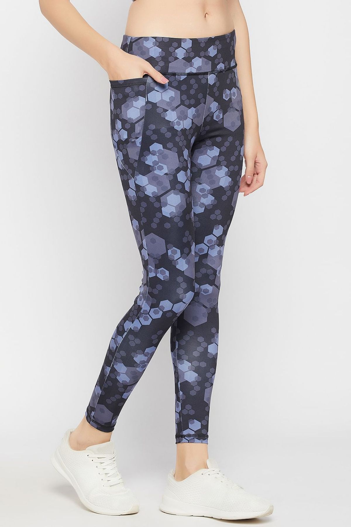Snug Fit High-Rise Geometric Print Active Tights in Dark Grey