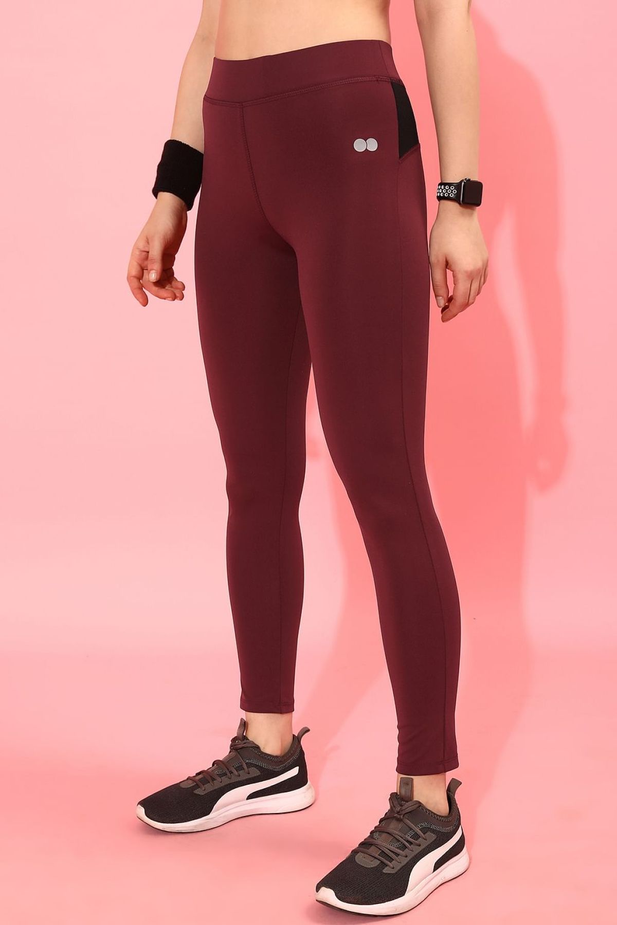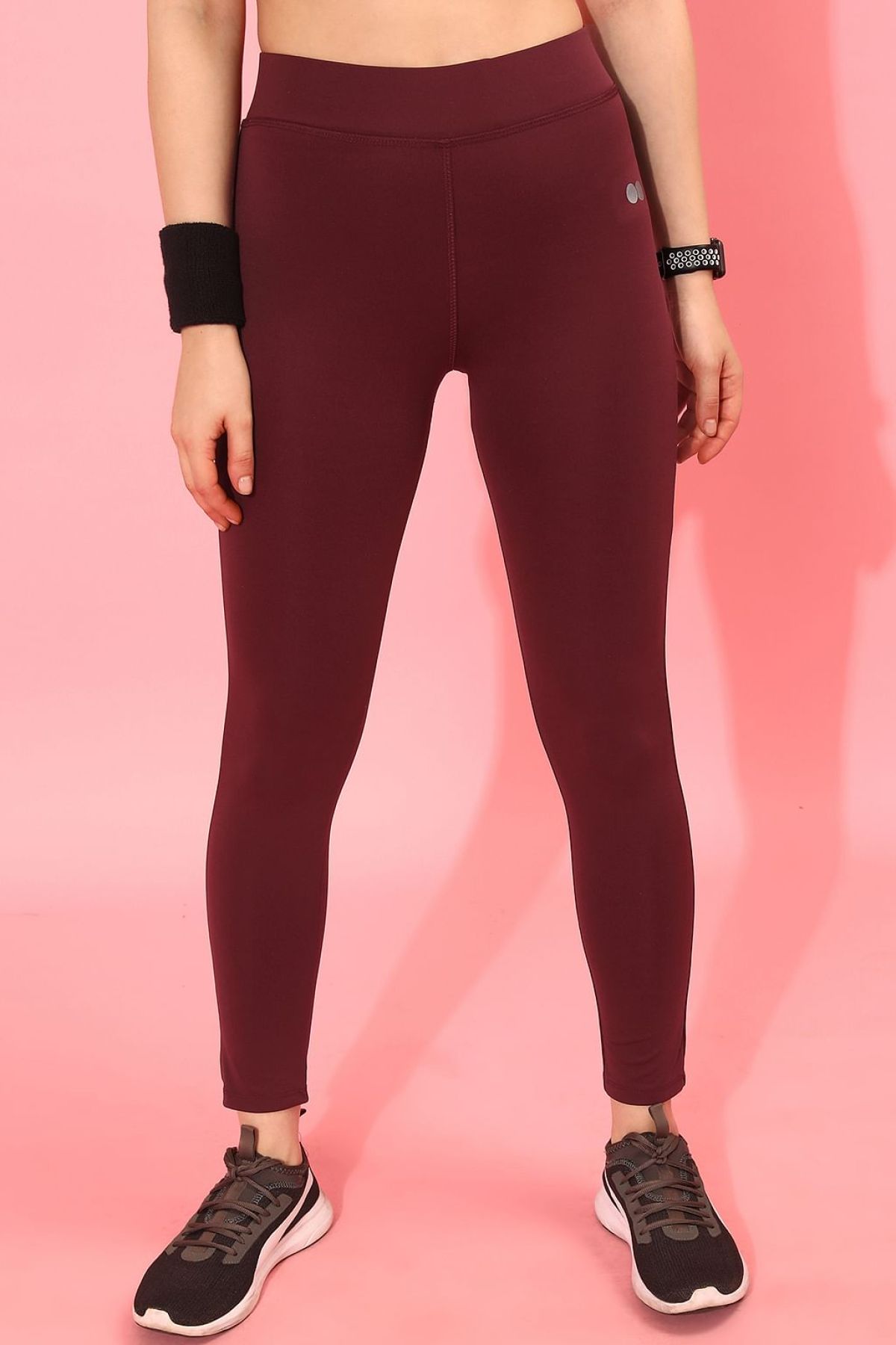 - Maroon high waist active tights crafted with soft poly-spandex fabric.