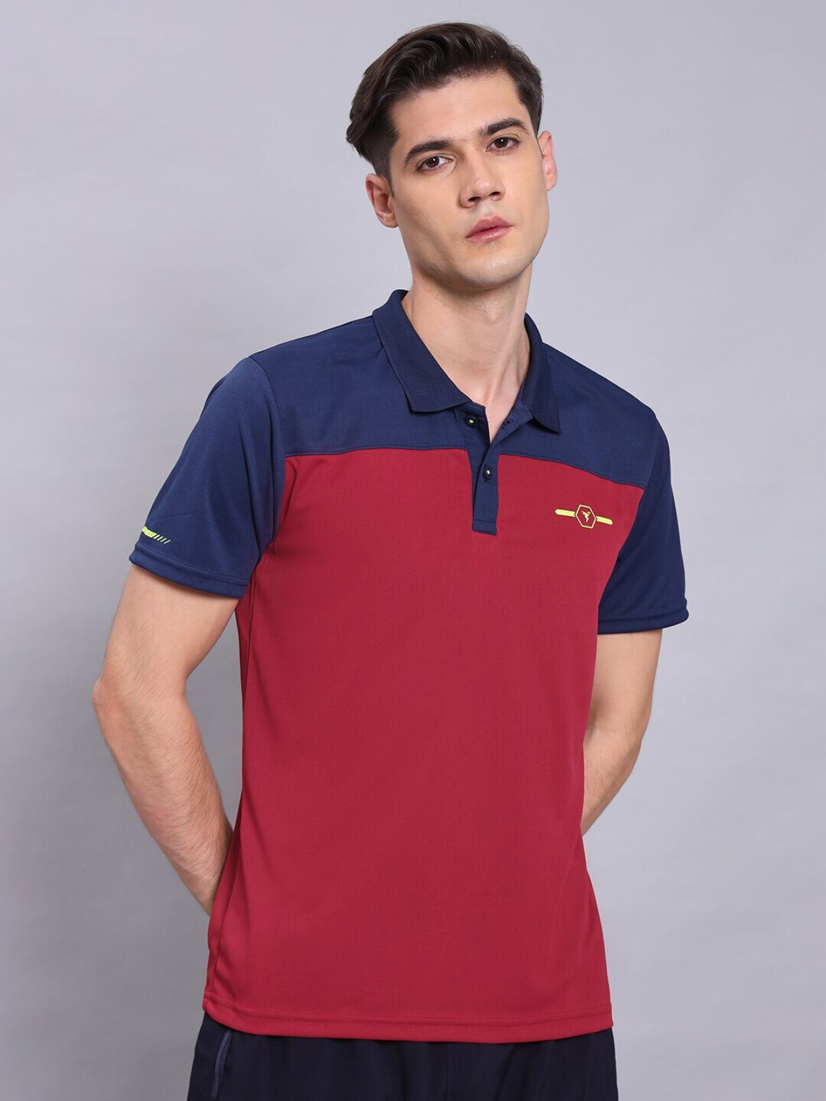 Technosport Colourblocked Polo Collar Antimicrobial Slim Fit Sports T-Shirt