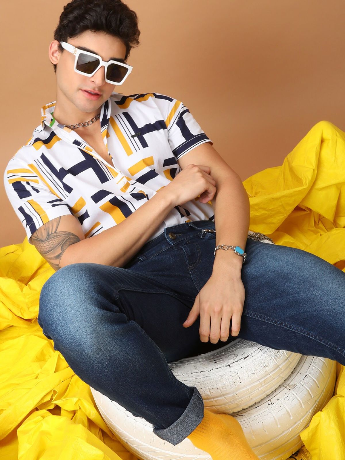 *Check the latest price and availability on the official store.The Indian Garage Co Men White & Navy Blue Slim Fit Printed Casual Shirt