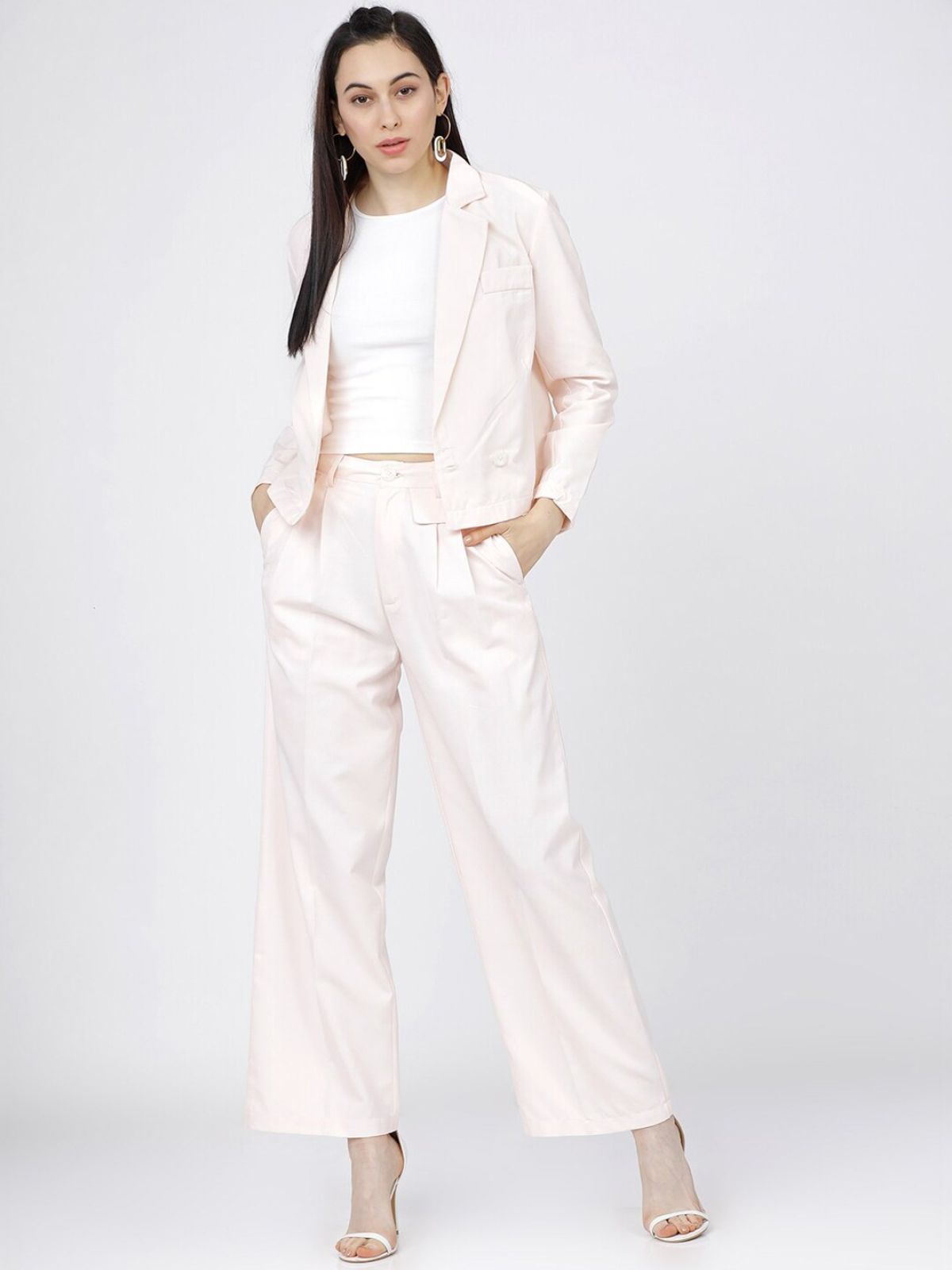 *Check the latest price and availability on the official store.Tokyo Talkies Women Pink Solid Double-Breasted Casual-Fit Crop Blazer