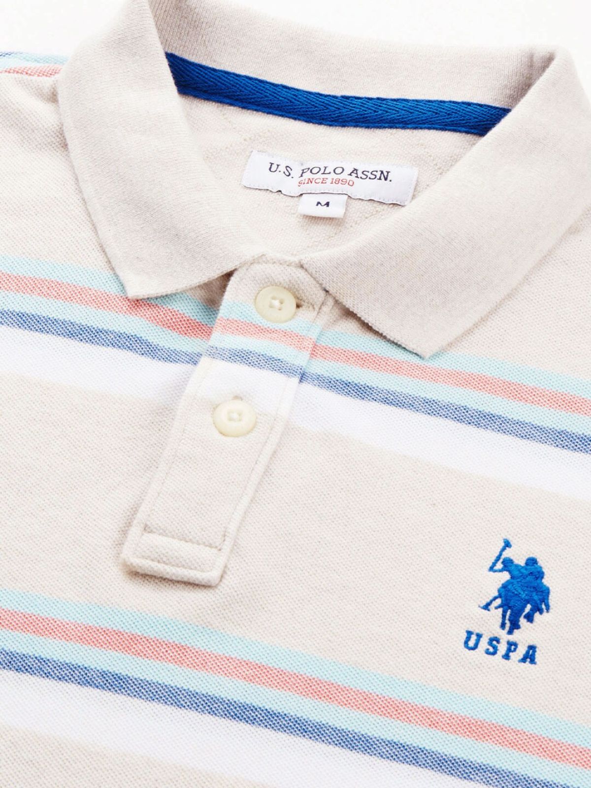 *Check the latest price and availability on the official store.U.S. Polo Assn. Men Off White Striped Pure Cotton Polo Collar Slim Fit T-shirt