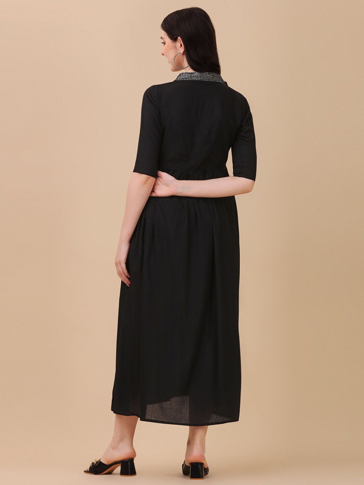 V-Neck A-Line Midi Dress (SHEETAL Associates)