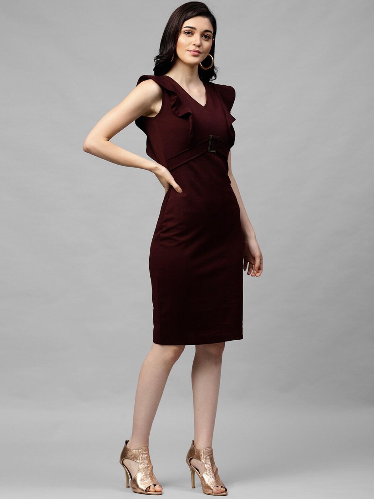 *Check the latest price and availability on the official store.Women Burgundy Solid Sheath Dress (Athena)