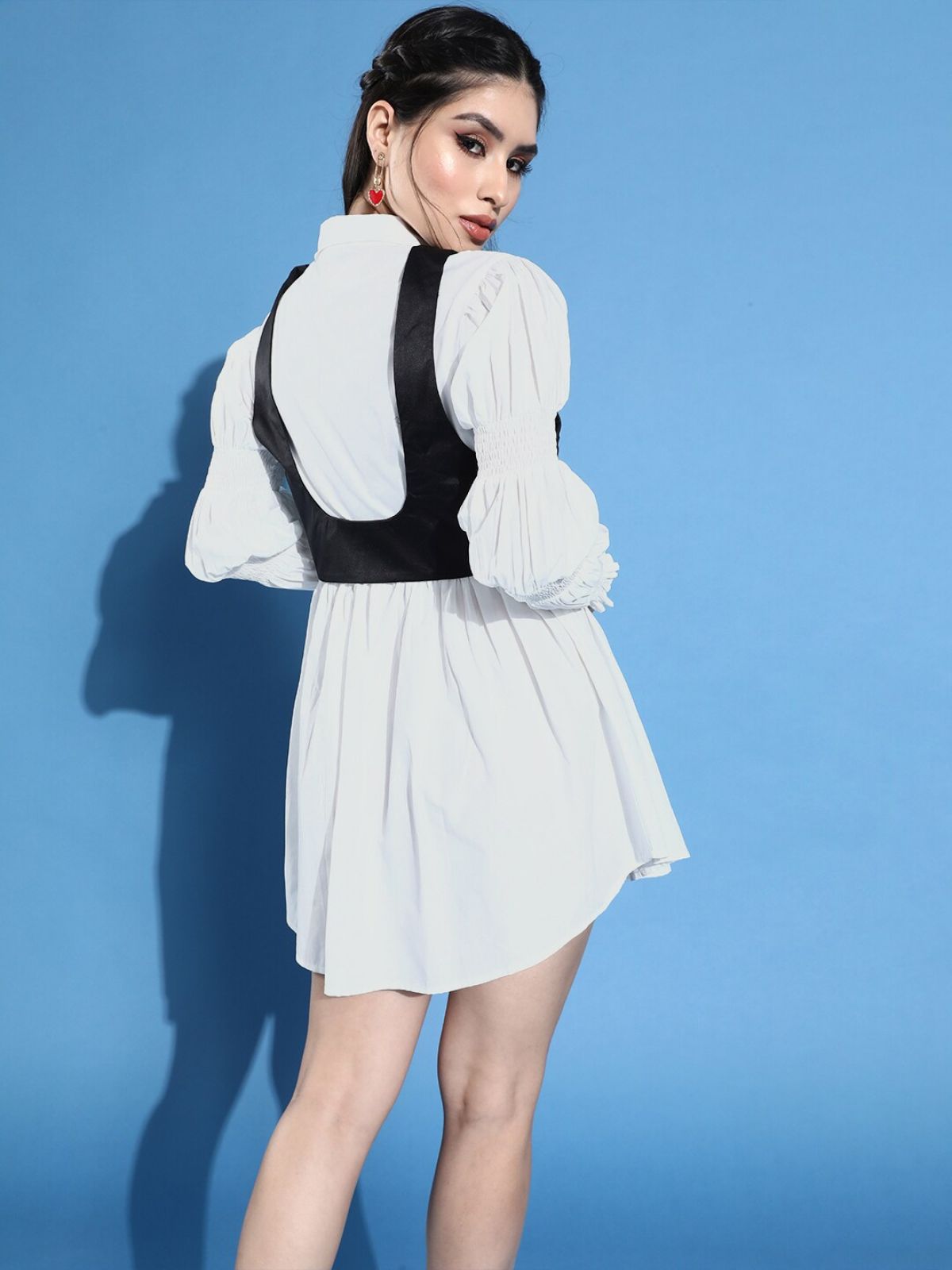 - Look ravishing when you wear this stylish dress. This dress comes with an attractive shirt collar and long puff sleeves for an enhanced appeal.