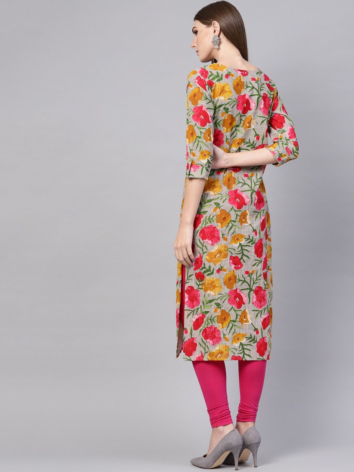 *Check the latest price and availability on the official store.Women Grey & Pink Floral Print Straight Kurta (AHIKA)