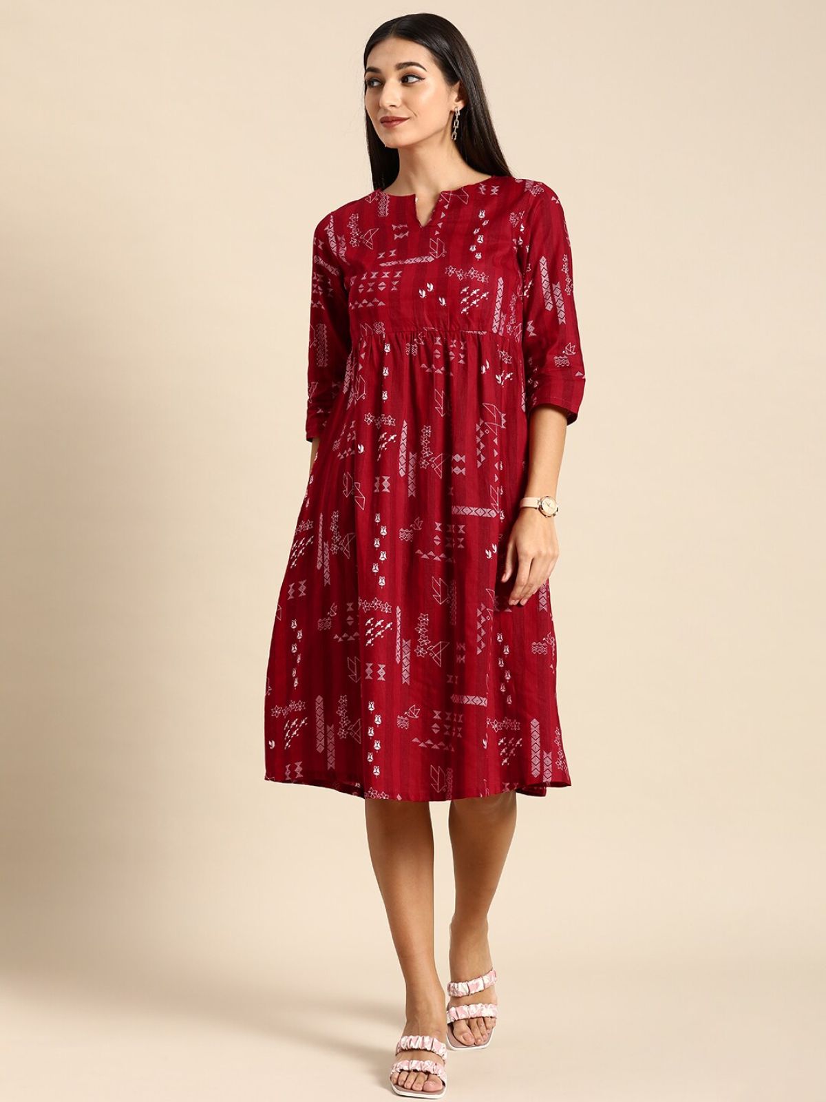 *Check the latest price and availability on the official store.Women Red & WhiteGeometric Printed Pure Cotton Fit And Flare Midi Dress (Anouk)
