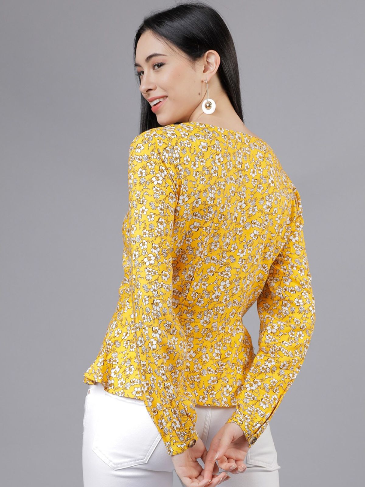 *Check the latest price and availability on the official store.Women Yellow Floral Printed Peplum Top (Tokyo Talkies)