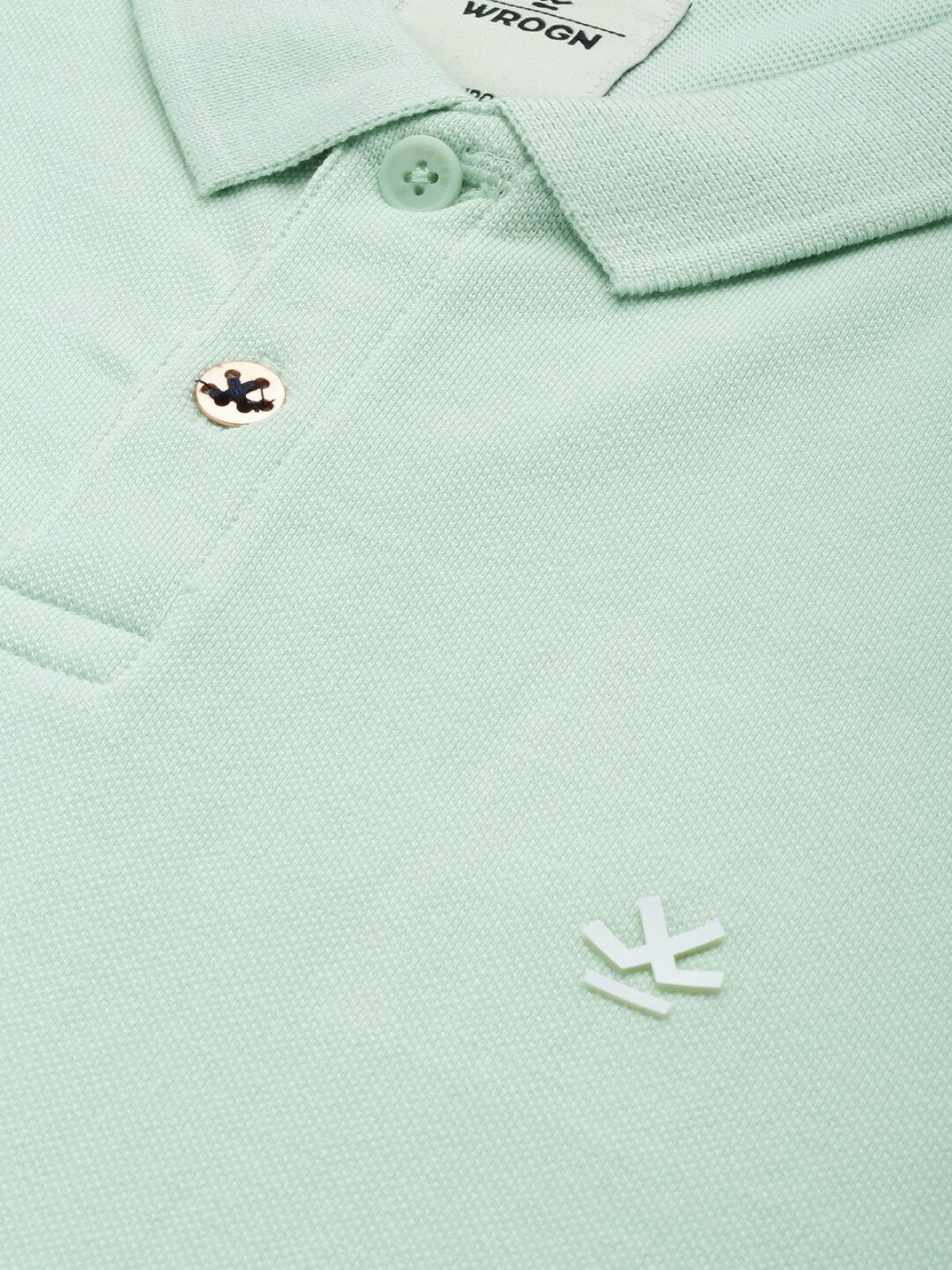 WROGN Men Green Slim Fit Solid Polo Collar Pure Cotton T-shirt